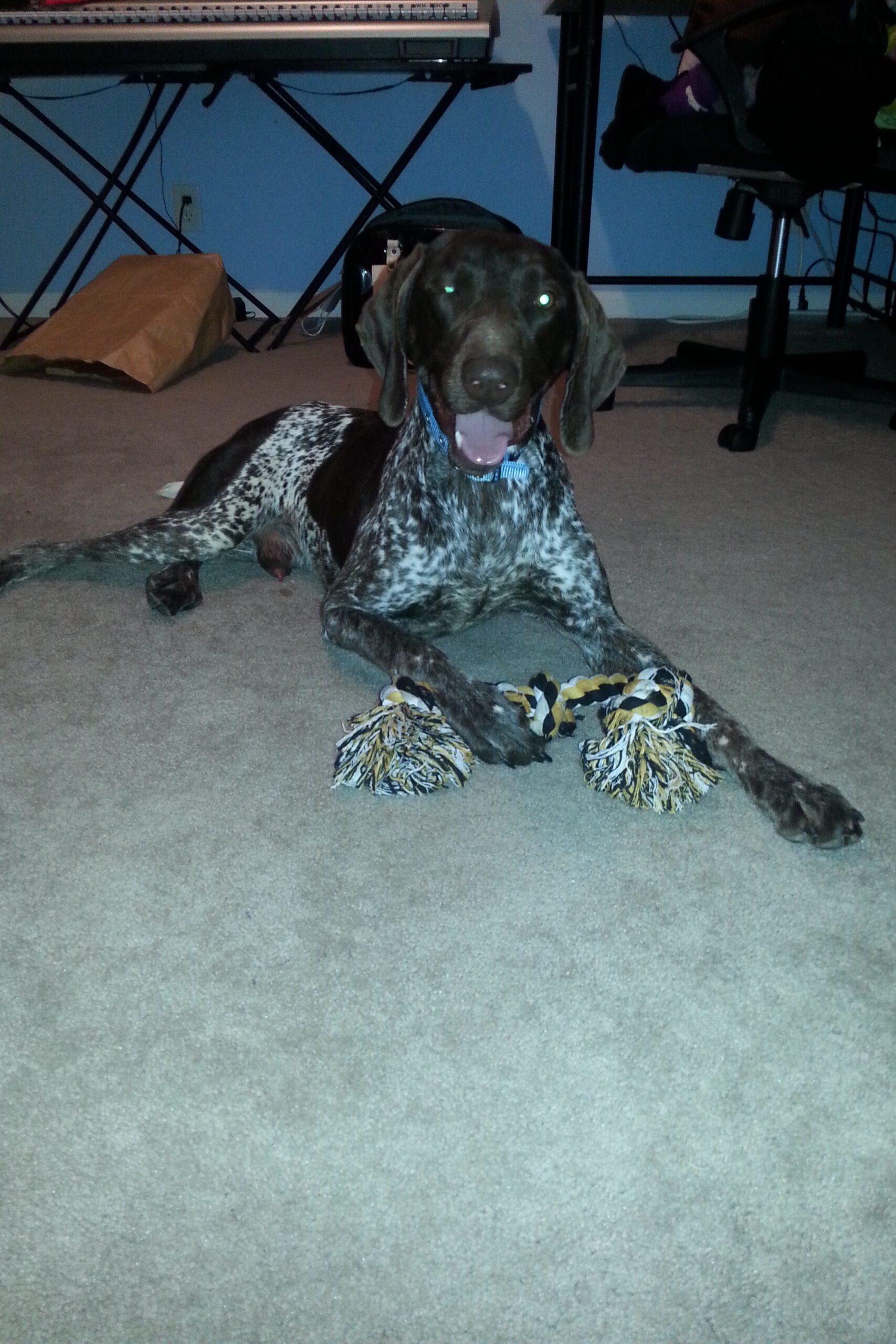 Buddy, aka Bubba dawg, came into our lives pre-kids. I grew up with only hunting dogs, mostly German Shorthaired Pointers. I really wanted a GSP of my own now that I was an adult with my own home, and went to our family hunting dog trainer because periodically he would have a dog retiring that would need a forever home.