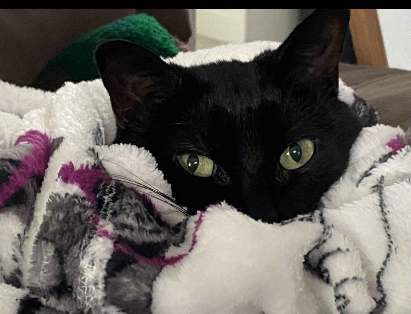One day, many years ago, I was walking my pup Idgie and saw this tiny little black kitten all alone, sitting in someone’s driveway. I found it odd and decided to see if she was OK. She wasn’t, and later I would learn that she had a severe upper respiratory infection. A friend of mine who taps cats, was able to catch her, as well as her brother. Both were knocking on death’s door. She and her brother recovered, and we adopted her.